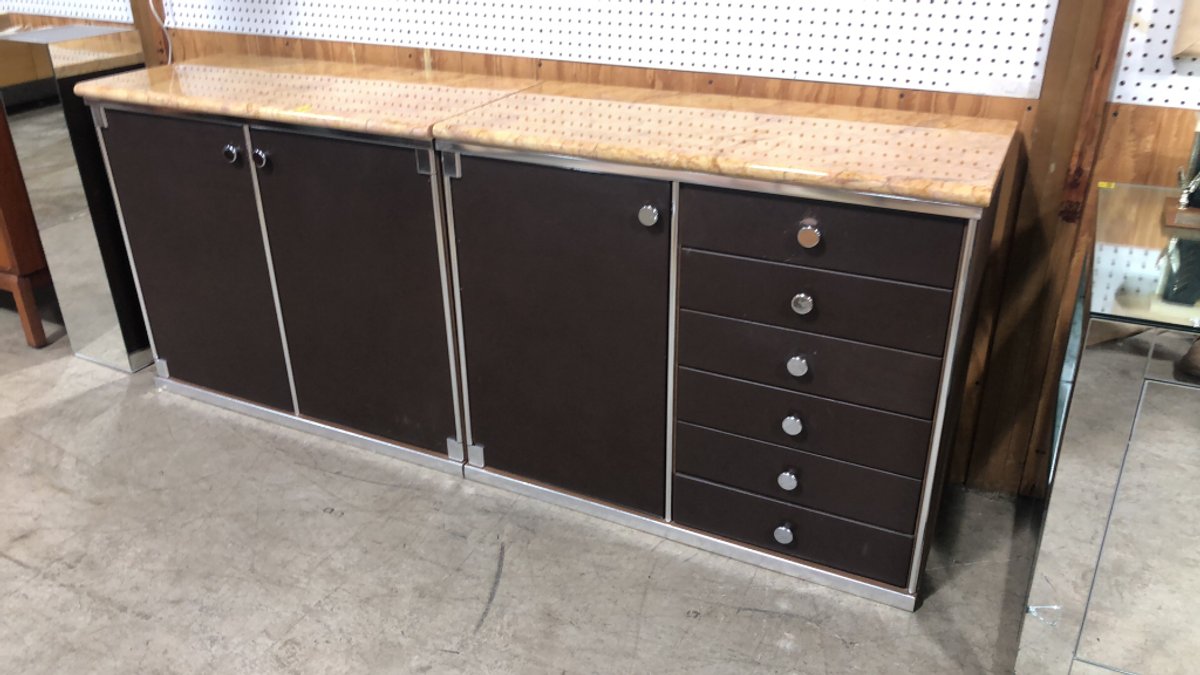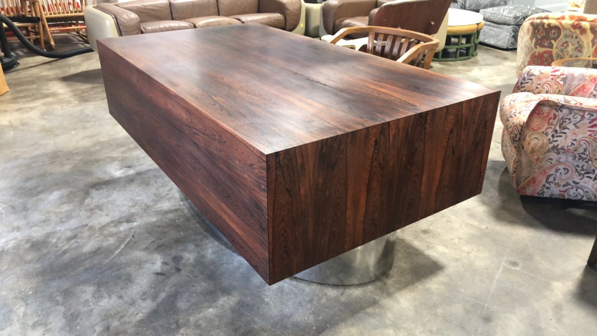 - Unique Walnut Executive Desk and Credenza with Chrome Base - Made in Norway