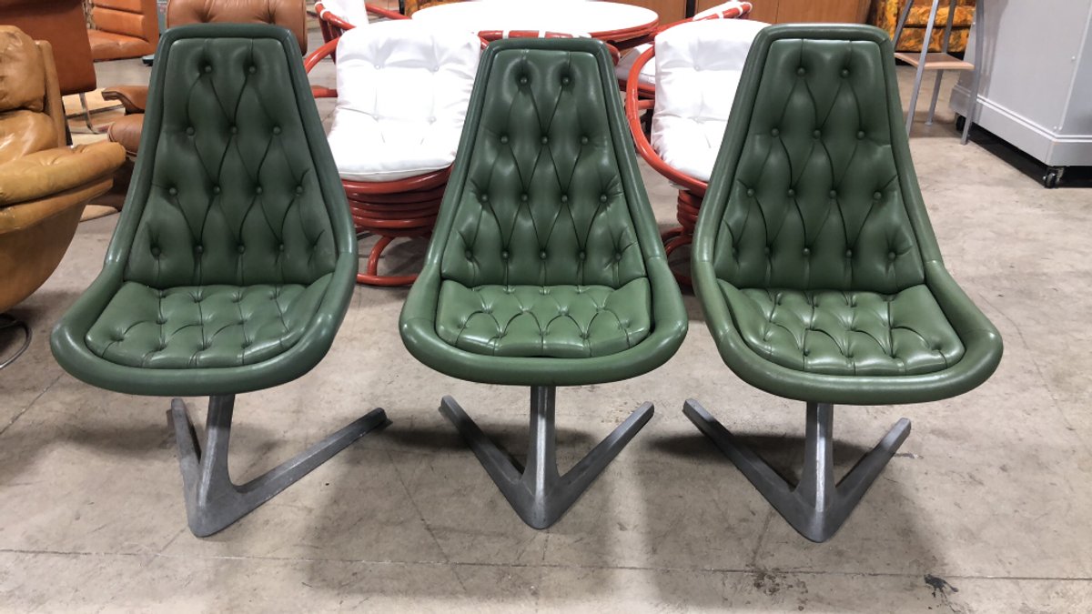- (3) Unique 1960s Chromcraft Sculpta Leather retro swivel chairs with chrome "star trek style" bases