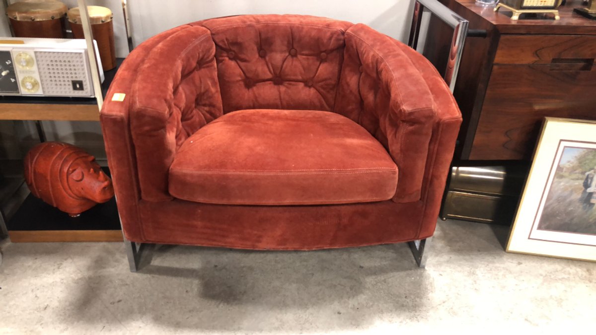 - Pair of Selig Imperial barrel club chairs on casters