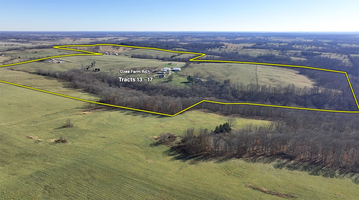 Tract 14: 153.5 ± ac; pasture and wooded acres; IMPROVEMENTS: Houses and Barns; frontage along Ozee Farm Road