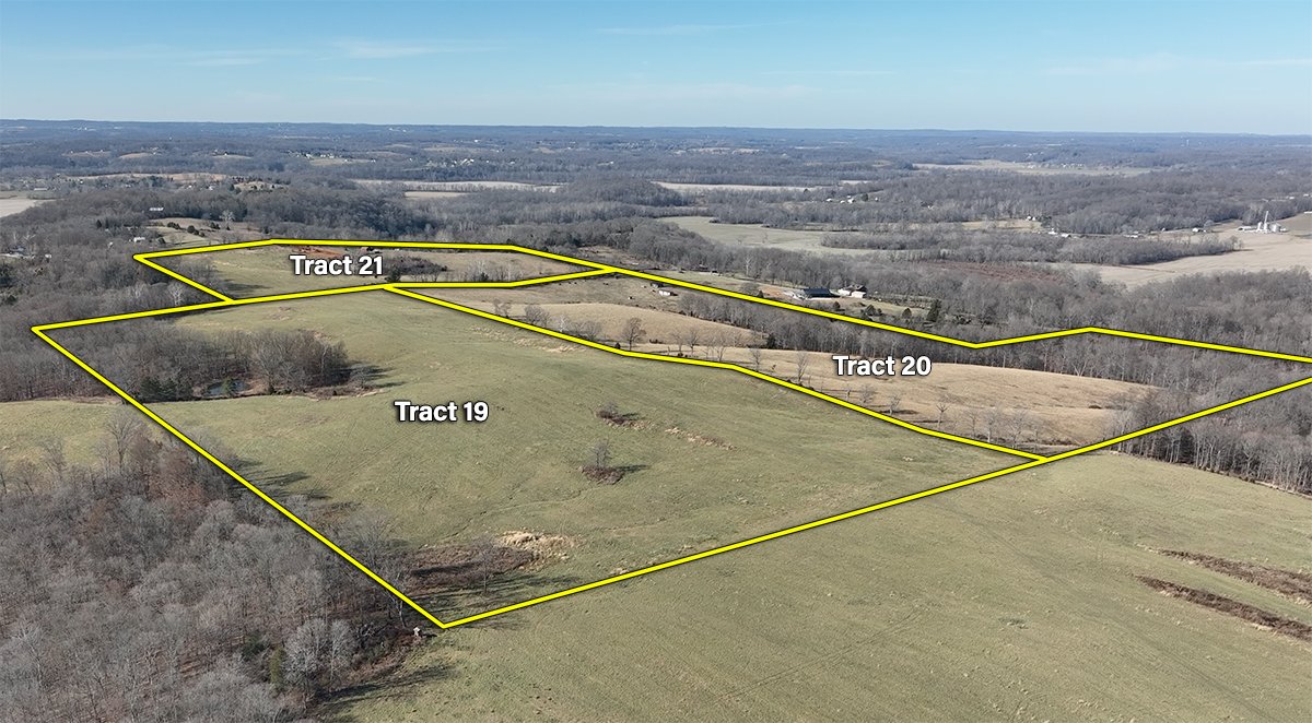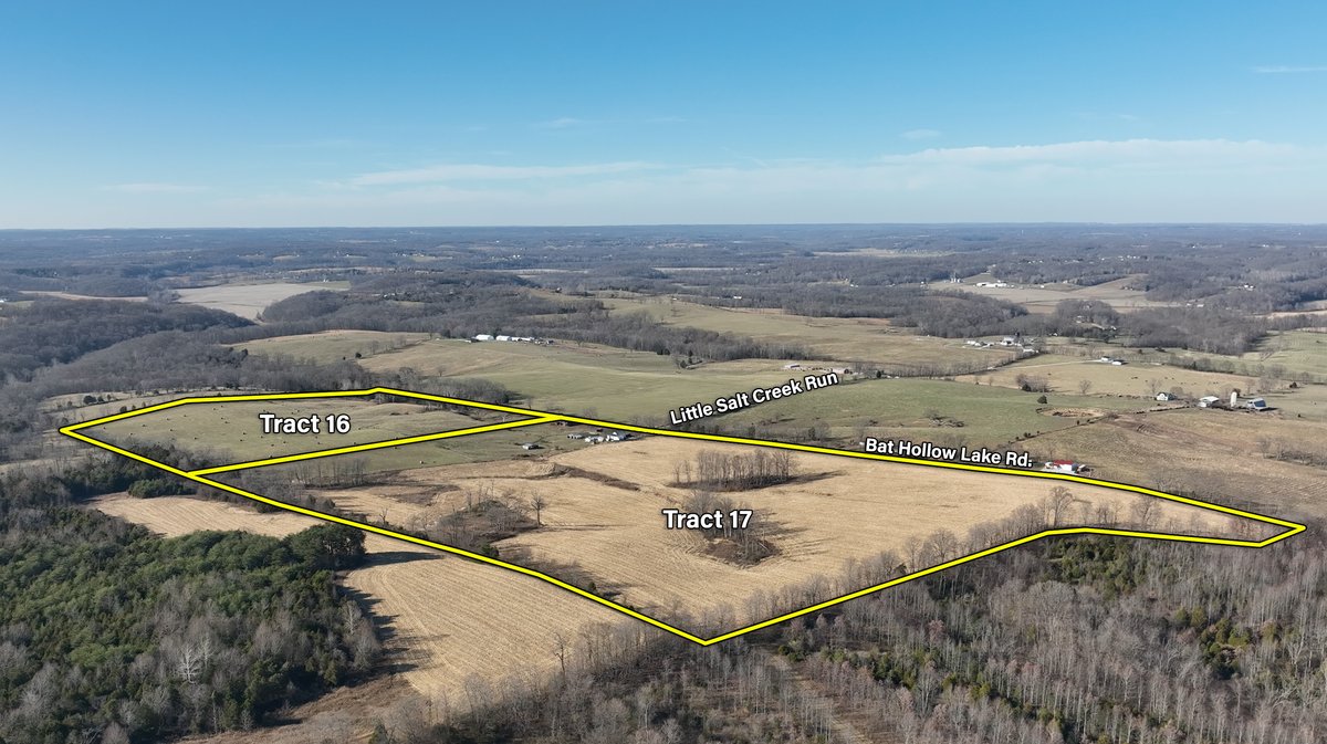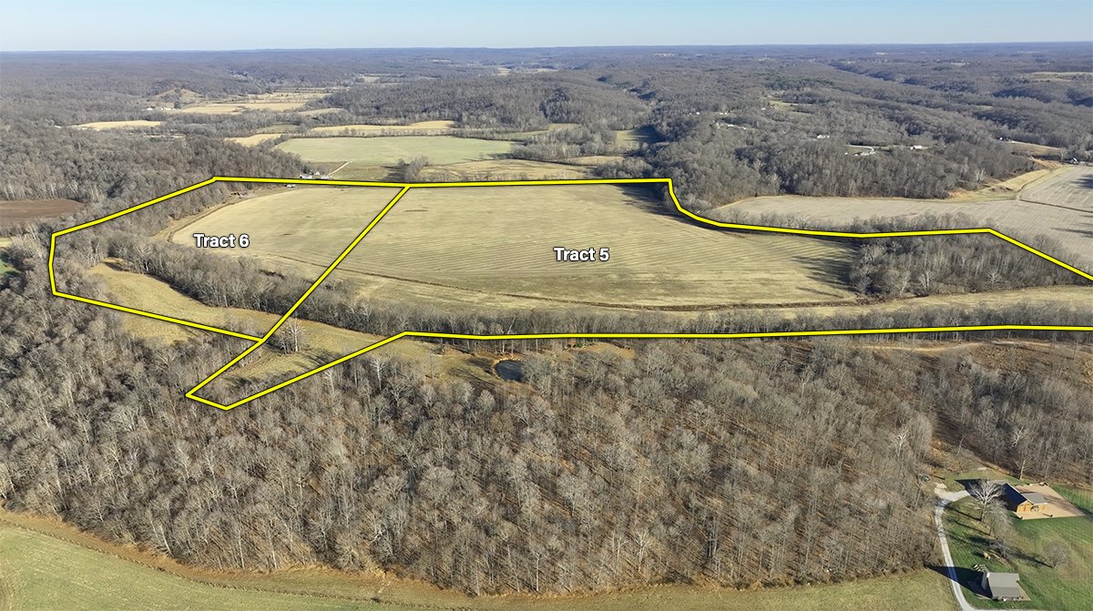 Tract 17: 64 ± ac; pasture and tillable acres; frontage along W. Pleasant Run Road; IMPROVEMENTS: House and barns