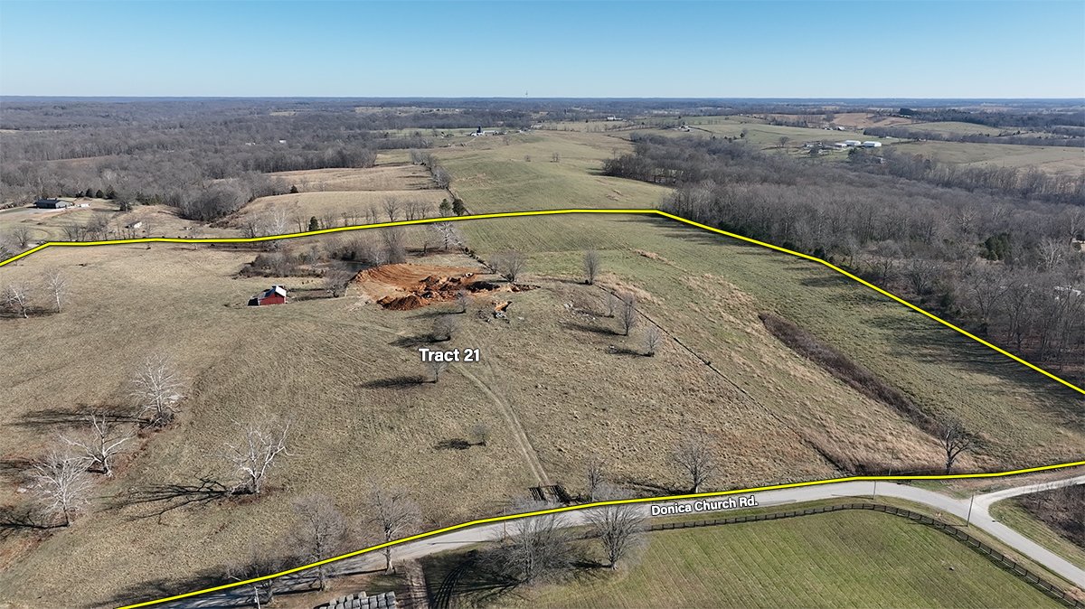 Tract 21: 40 ± ac; pasture acres; frontage along Donica Church Road and LuAllen Lane; IMPROVEMENT: Barn