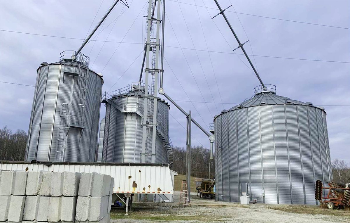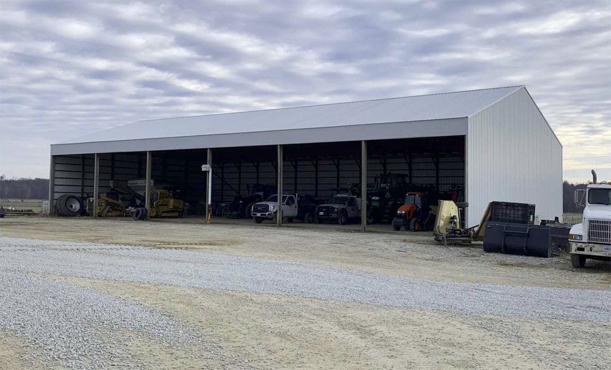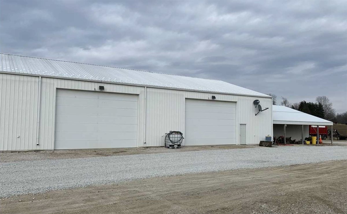 TRACTS 24, 25 & 26: 37.35 total acres with 21+/- tillable acres; 30,000 SF buildings and 2,280 SF office space with 109,000-bushel grain storage facility including 8,000 (bu/hr) grain leg and drive over grain pit; hoop barn onsite.