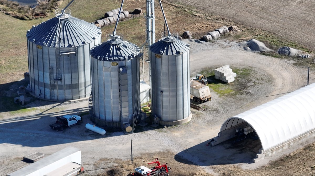 Tract 26: 3 ± ac; IMPROVEMENTS: 109,000 (bu) grain storage facility with 8,000 (bu/hr) grain leg and drive over grain pit; Hoop barn onsite
