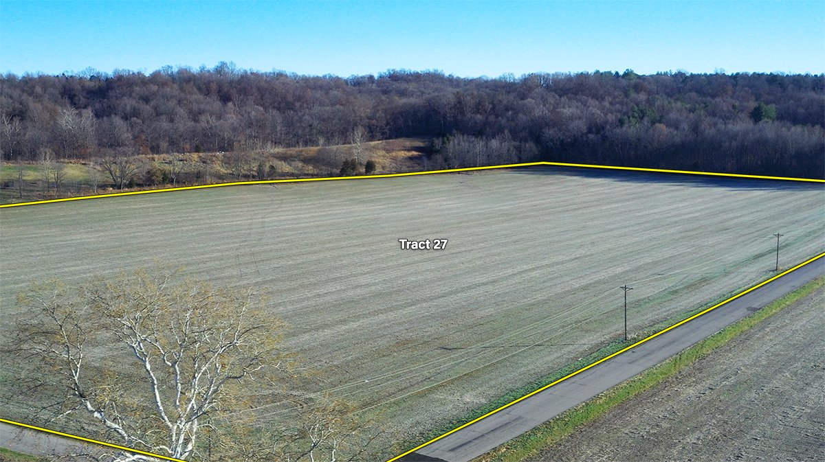 TRACT 27: 27.34-acres at the northeast corner of Coveyville Road and Larry Tincher Lane. Nearly all tillable with Wilbur and Bartle as predominant soil types.