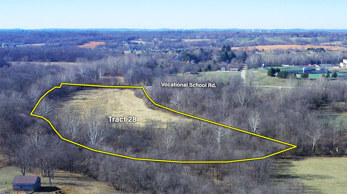Tract 28: 15.2 ± ac; tillable and wooded acres; frontage along Vocational School Road