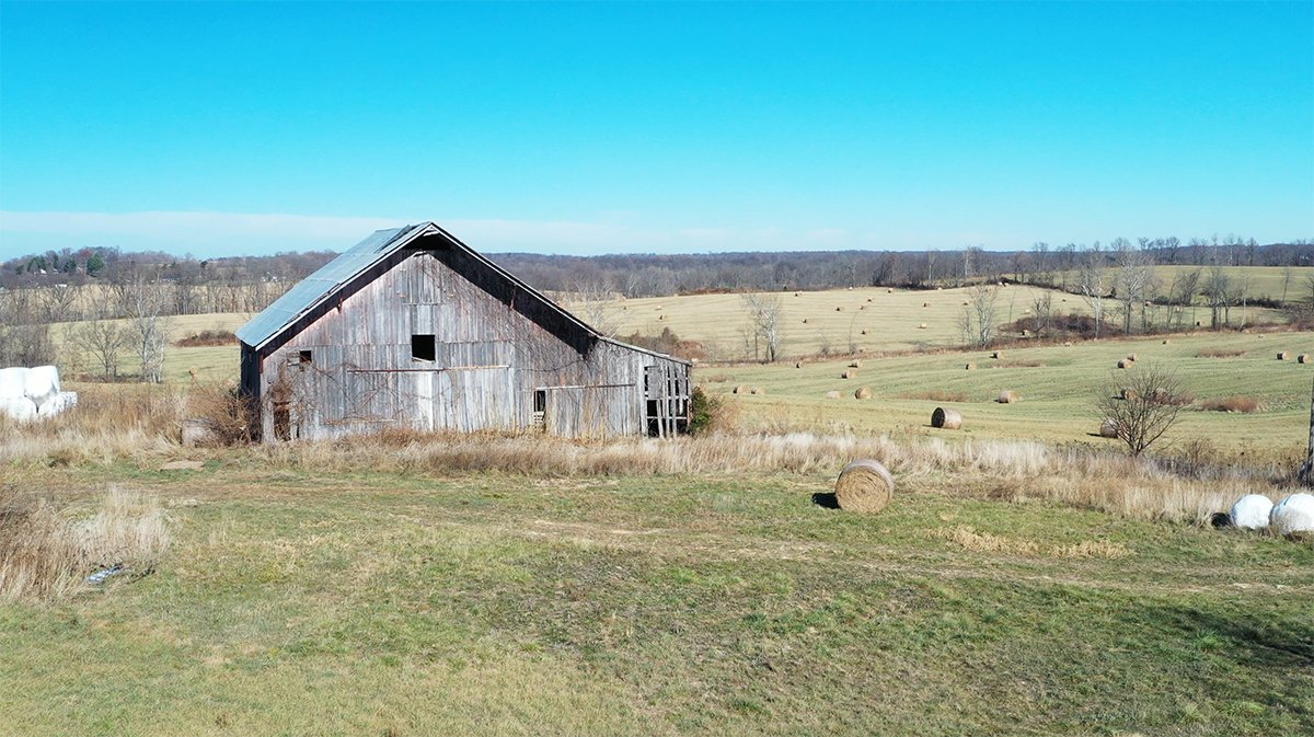 TRACT 14: Large farmstead/hobby farm tract on 153.5 +/- Acres with houses and support structures. 840-SF home; 1,775-SF home; 8,780-SF barns; more commonly known as 866 Ozee Farm Road, Bedford, Indiana.