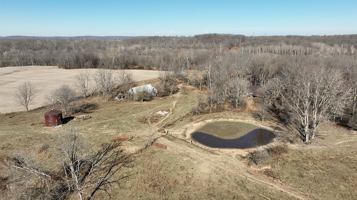 TRACT 29: With gated access off of Hwy 50 east of Bedford, this 94-acre tract is already established for hay/pasture. The tract is improved with an open-faced equipment barn.