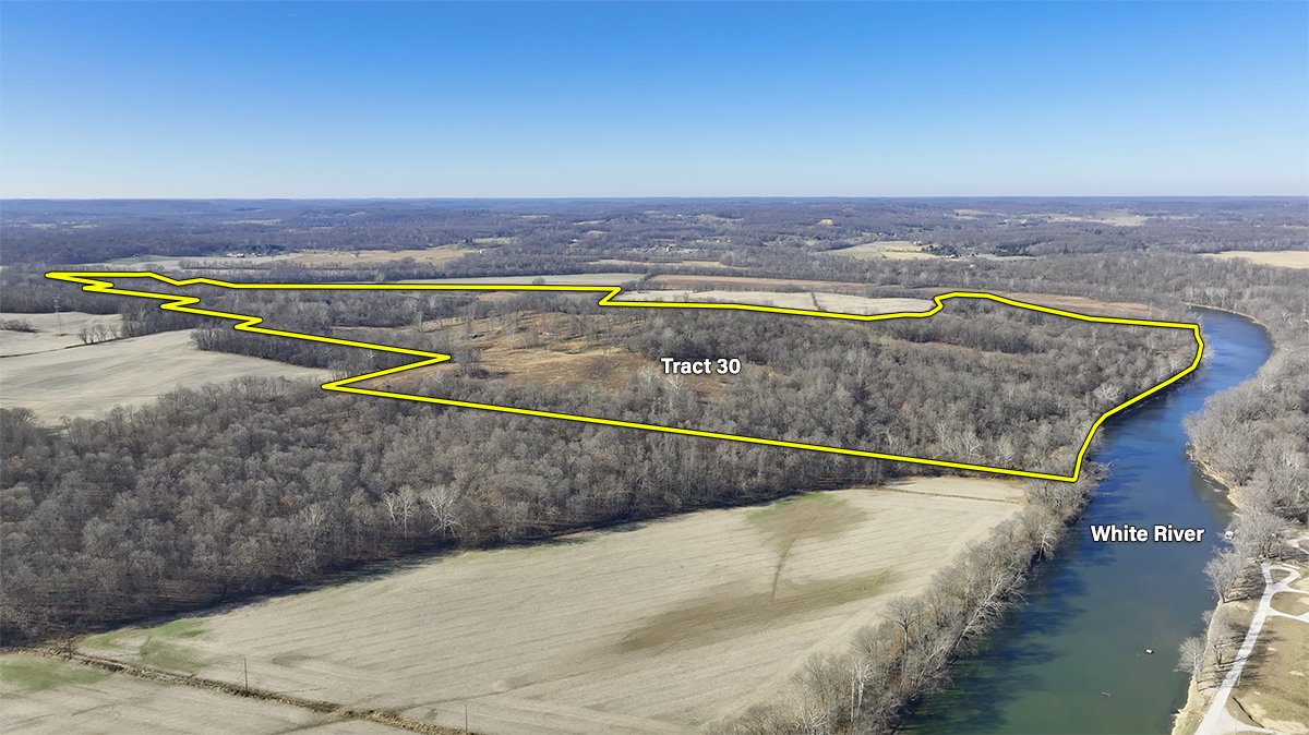 Tract 30: Located southwest of Bedford with frontage along the White River, accessed via Woods Ferry Road, this tract is just across the river from the Bedford Boat and Sportsmen’s Club. GPS LOCATOR: 38.822592, -86.538743