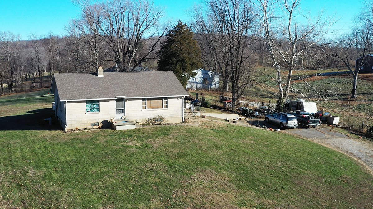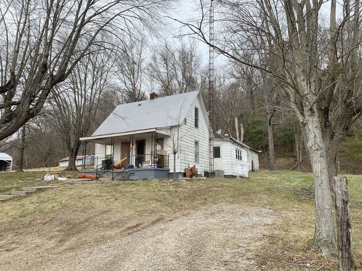 TRACT 18: 952-SF home and 720-SF detached barn on 22 +/- acres more commonly known as 363 Ozee Farm Road, Bedford, Indiana. Both the home and barn feature a metal roof.