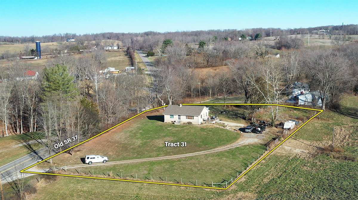 TRACT 31: 1-story stone home of 1,200-SF on 1.34 +/- acres more commonly known as 1478 Old SR 37, Bedford, Indiana.