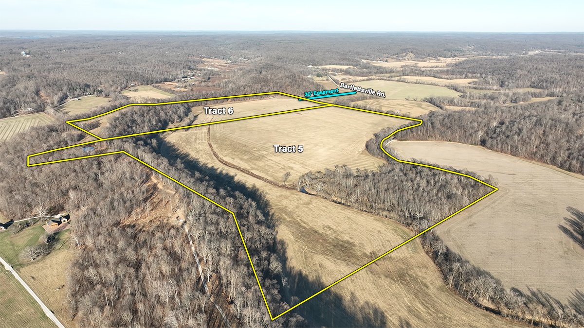 Tract 6: 78 ± ac; tillable and wooded; access off Bartlettsville Road