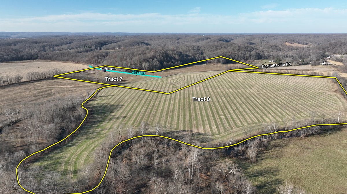 TRACTS 4-8: Features almost 400-contiguous acres including approximately 242+/- tillable acres with Stendal, Haymond, and McGary as predominant soil types. The large 150-acre field in Tract 5 is a SWING tract, to be combined only with Tracts 1,2,3,4, or 6 or an adjoining property owner. Tract 6 includes access through Tract 7 off of Bartlettsville Road.