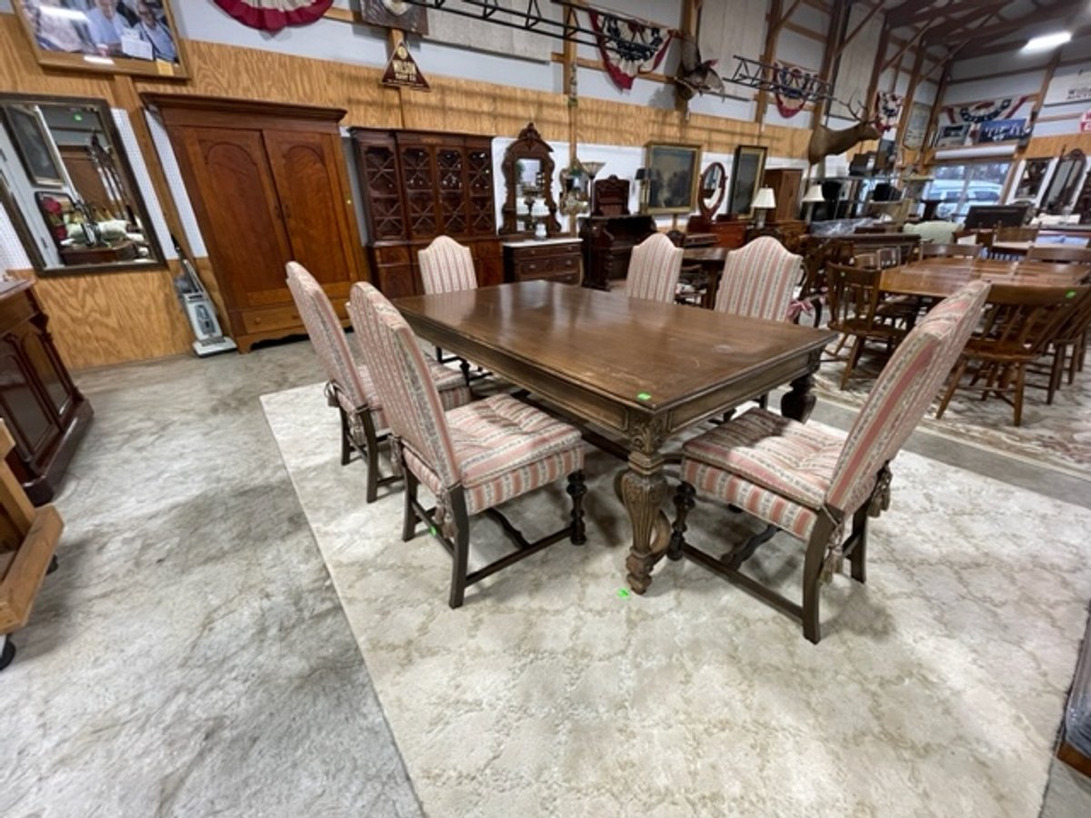 - 46" x 82" Victorian style dining table with carved legs