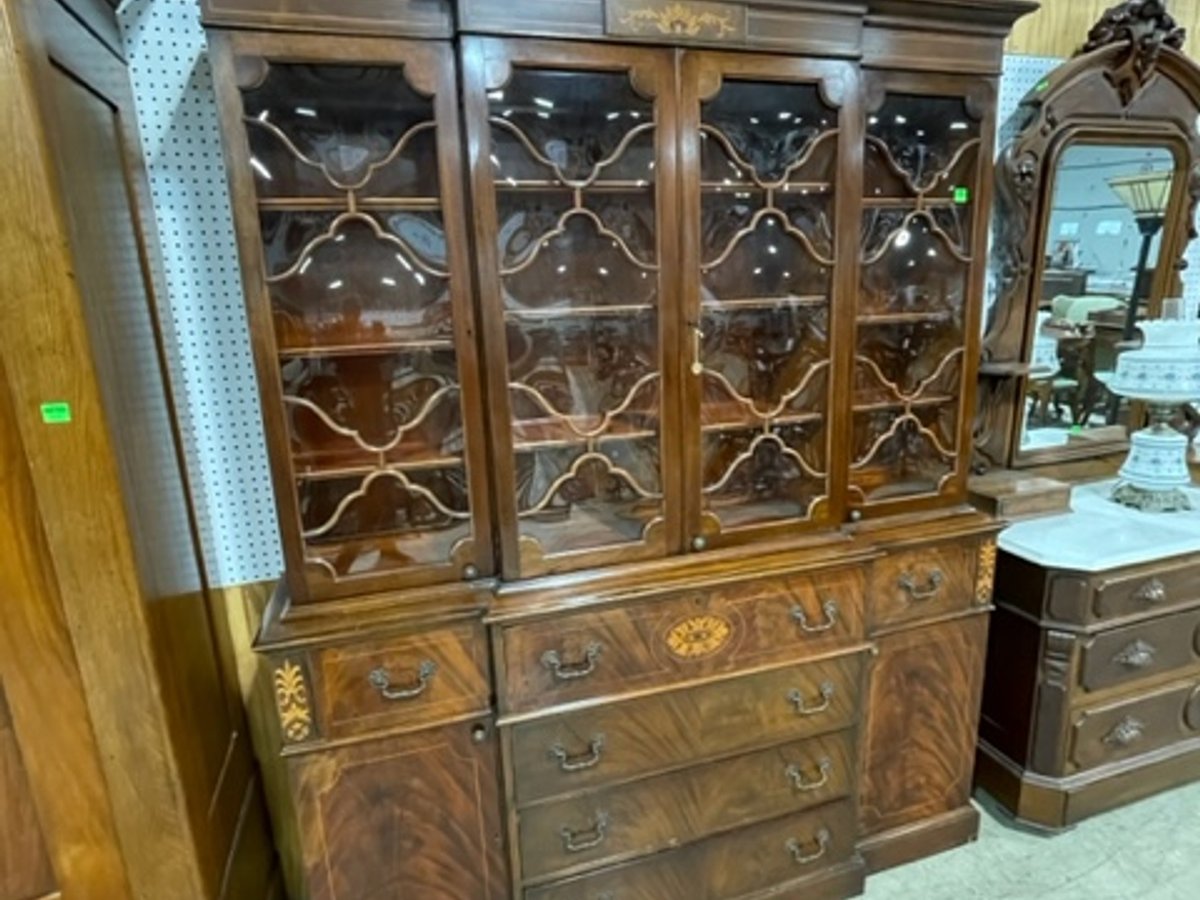 - Exceptional 81" Burl Mahogany breakfront