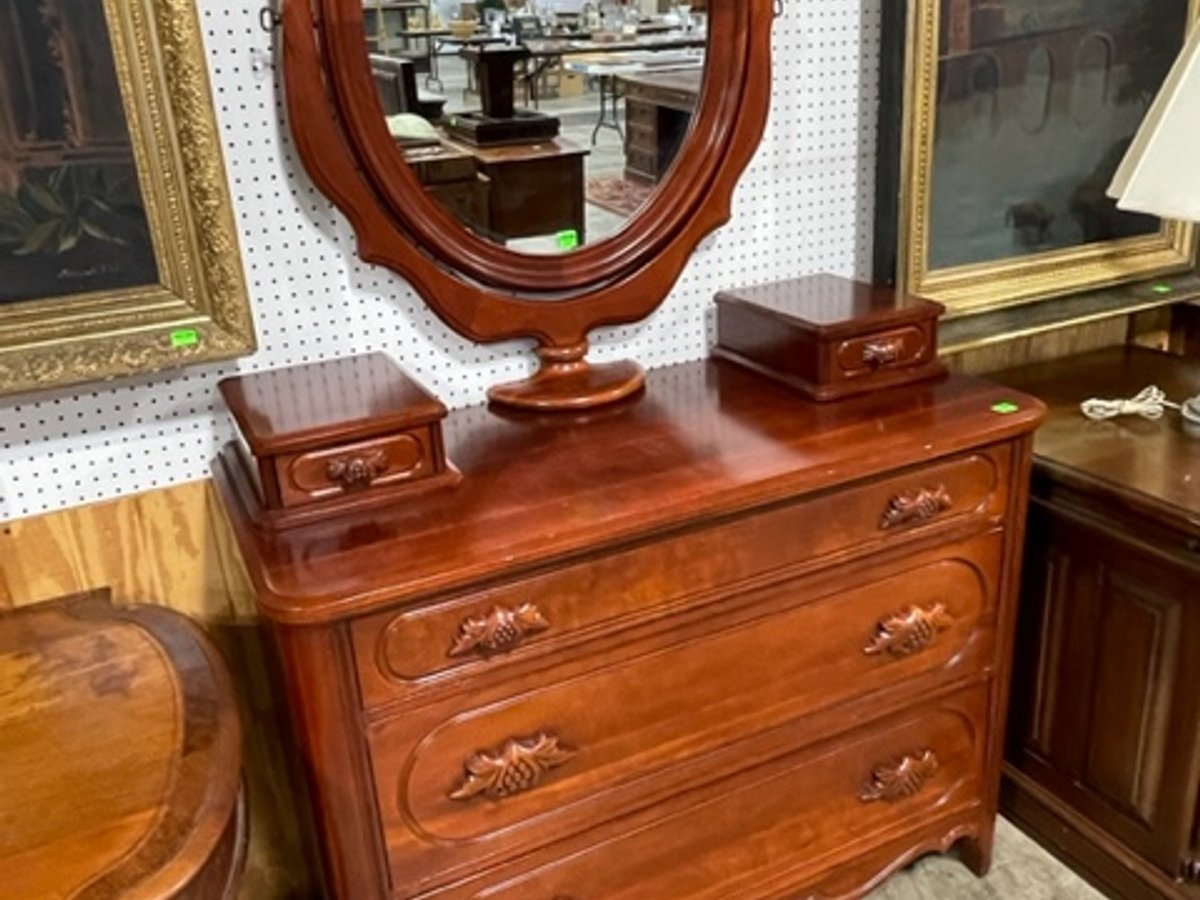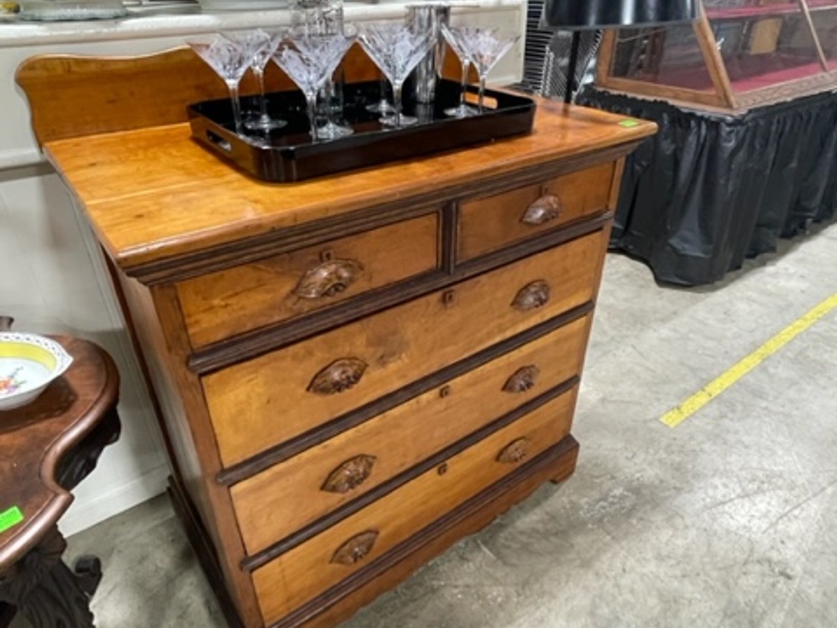 - Chest of Drawers with carved pulls, cherry, American c. 1860
