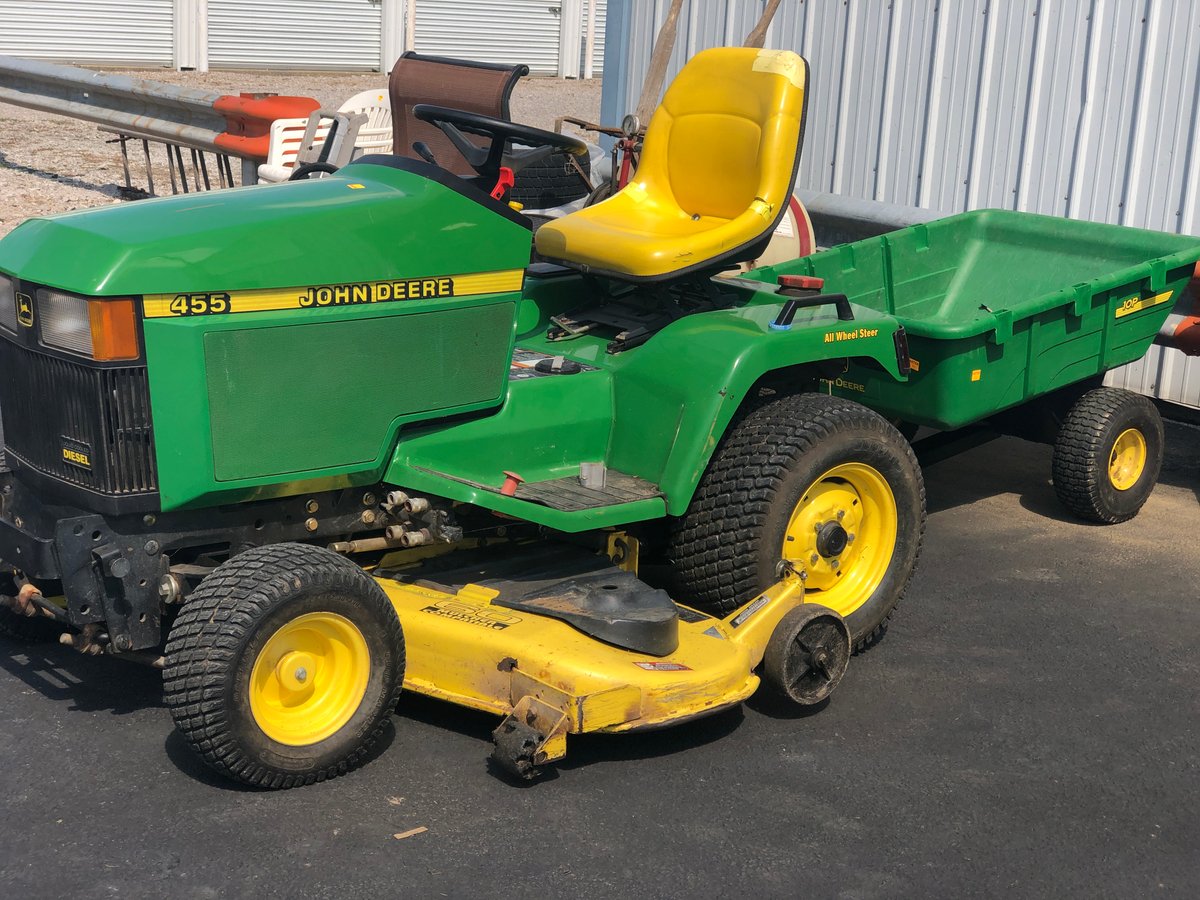 - Outstanding John Deere 455 Diesel Lawn Tractor (60" Deck, All Wheel Steer)