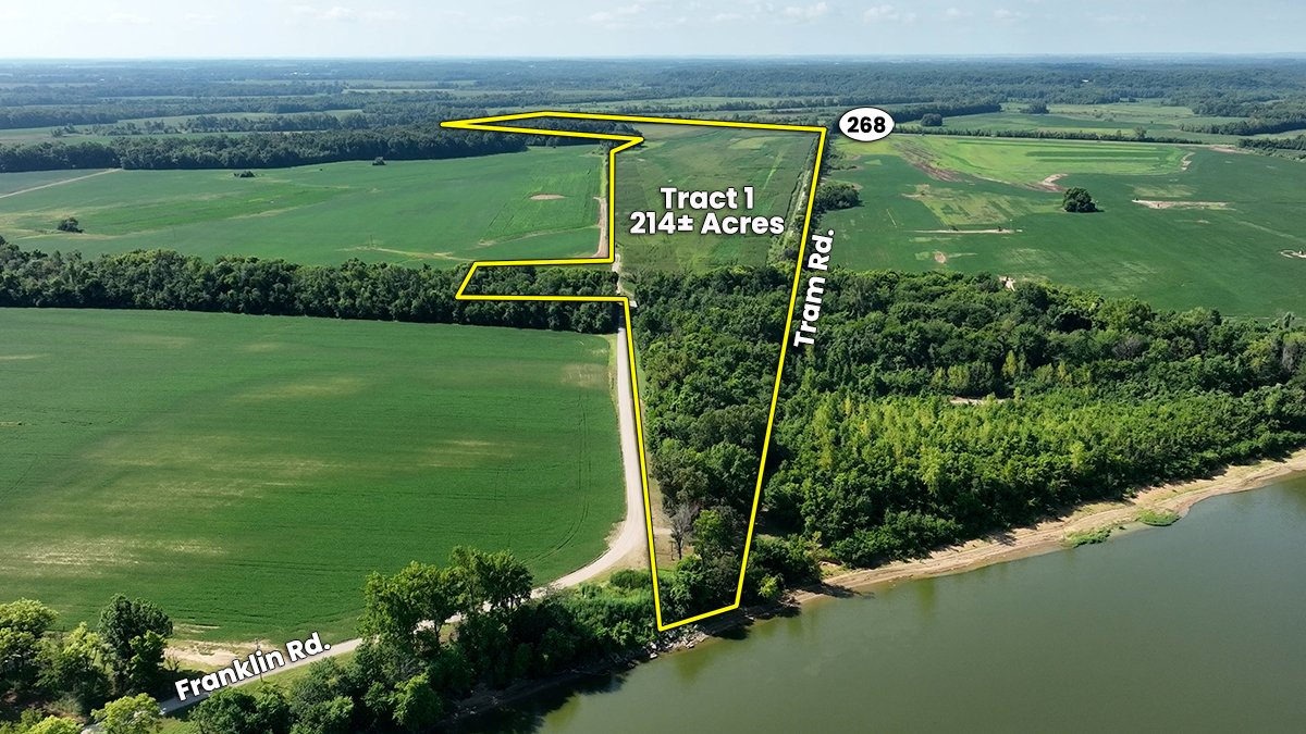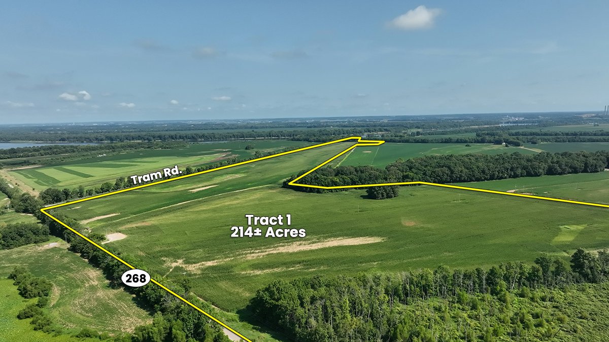 Tract 1: 214 ± AC; Approx 179 tillable acres; GPS LOCATOR: 37.854332, -87.749465